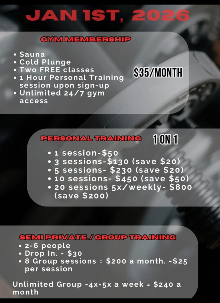 Relax after your workout with a sauna or cold plunge session. Cold plunge sessions are $15 for non members.